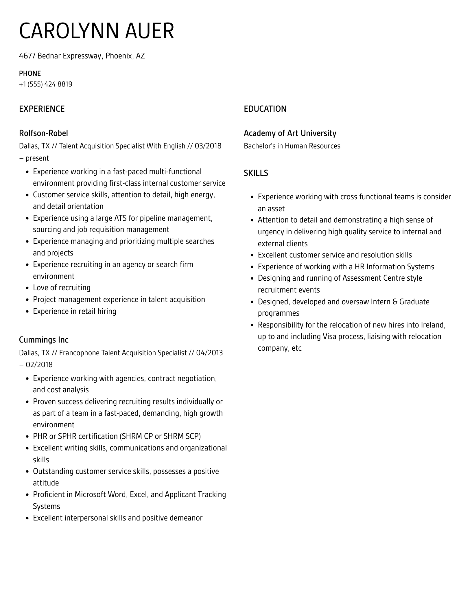 Talent Acquisition Specialist Resume Samples | Velvet Jobs